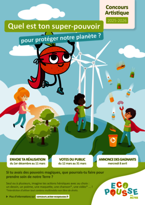Les classes bénéficiant du programme Eco Pousse peuvent participer au concours national, en imaginant seul ou à plusieurs les actions héroïques pour protéger la planète, à travers des créations artistiques : dessins, vidéos, maquettes...